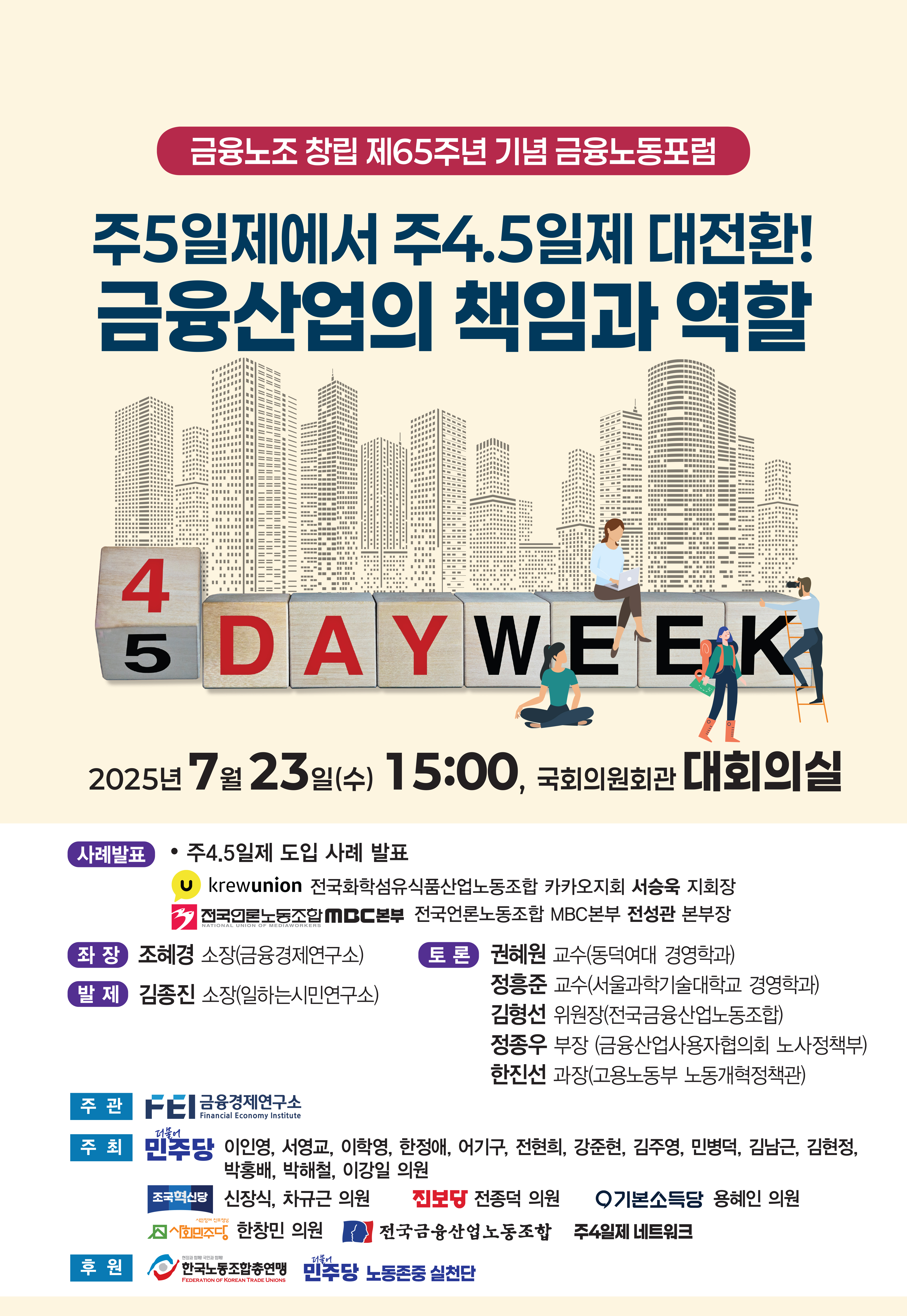 [금융노동포럼] 주5일제에서 주4.5일제 대전환! 금융산업의 책임과 역할